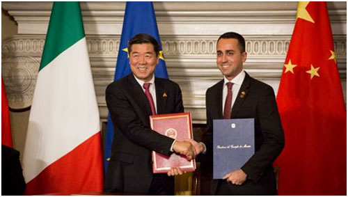 One more feather added to the Chinese controversial Belt and Road Initiative. Out of all the G-7 and the EU countries, Italy becomes the first to join hands with China in her global infrastructure-building project i.e. BRI. Italy on 23rd March 2019 signed 29 memorandums of understanding (MoU) with China, giving a jolt to her Euro-Atlantic allies. Though, the agreements signed between them are alluded as non-binding. To this end, series of doubts and serious concerns surrounds the EU members to Italy's transatlantic ally US. Bold statements both within and outside the EU made the headlines in top media.