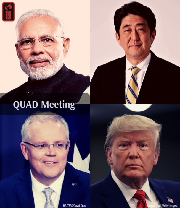 The Quadrilateral security dialogue (also known as QUAD) is an informal strategic dialogue between the United States, Japan, Australia, and India which aims for a free and secure Indo-Pacific region to counter China’s expansionist ‘String of Pearls’ strategy in the region with specific focus on freedom of navigation, maritime security cooperation, joint military exercises. It was formed in 2007, initiated by Japanese Prime Minister Shinzo Abe with the support of the US, Australia, and India.
