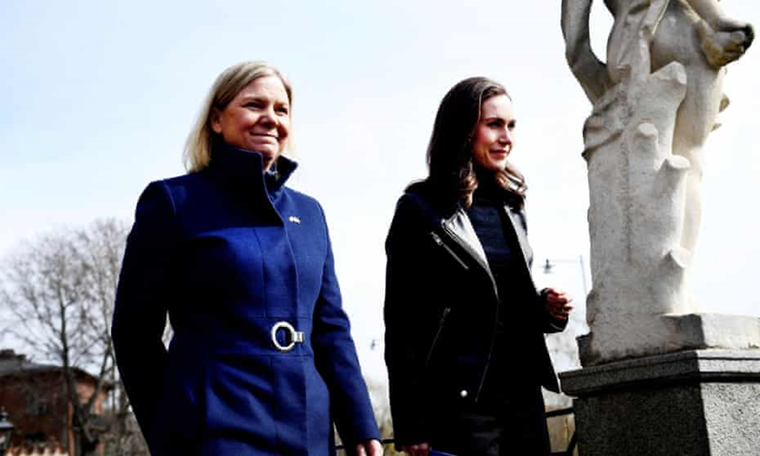 Sweden's prime minister Magdalena Andersson, left, and Finland's counterpart, Sanna Marin, met in Stockholm on 13 April. Photograph: Tt News Agency/Reuters